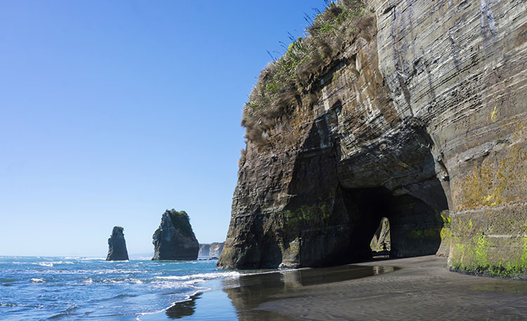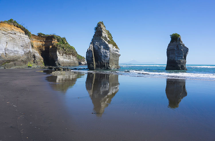 About an hour up the coast from New Plymouth (near Tongaporutu Bridge) sits a beach with some interesting rock formations. It used to be famous for “Elephant Rock”, until its trunk fell off and it stopped resembling an elephant. One of the Three Sisters set of rocks disappeared as well — this place has had a rough time! The beach is nice though and there is still heaps to see. The whole trunk falling off thing is a bit annoying but don’t let that put you off visiting — it’s definitely one of the best things to do in New Plymouth (or near New Plymouth to be exact).