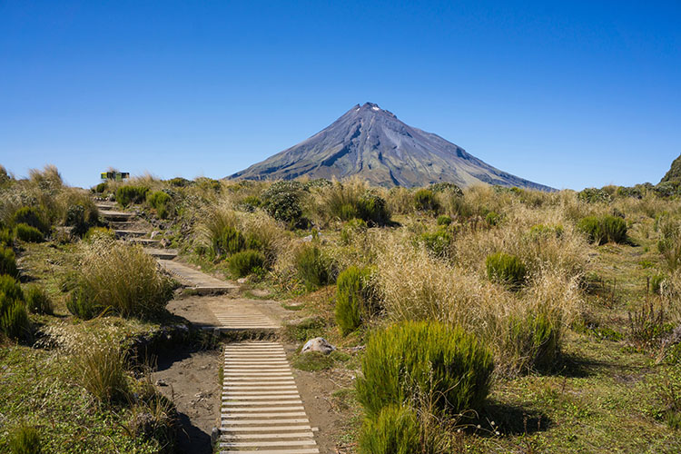 From there it’s a quick walk down to the Pouakai Tarns. These small mountain lakes (that’s what a tarn is, in case you had no idea what I was on about) are perfectly positioned for views of Mount Taranaki. If it’s a calm day you can get great reflection photos, making it easily one of the best places to view Mount Taranaki. All up the hike should take between four and five hours. There’s quite a bit of uphill hiking involved and once you’re at the top there isn’t any shade, so make sure to prepare for that.