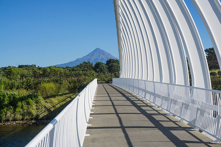 For a different (far more zoomed out) view of Mount Taranaki you can head to Te Rewa Rewa Bridge. It’s a cool looking bridge and the backdrop is interesting.